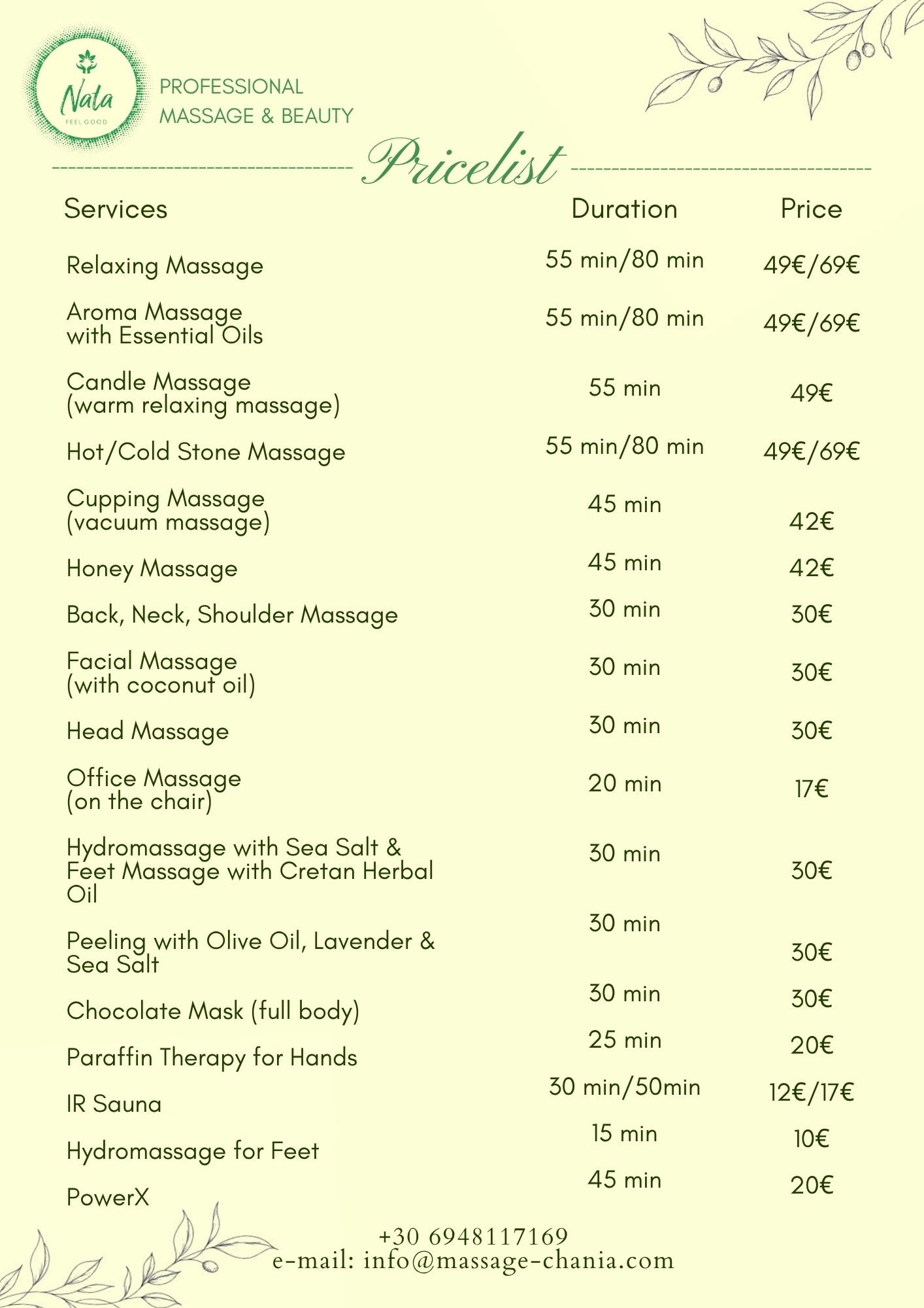 Our masseur has completed 13 diplomas, including KNEIPP AKADEMIE diploma, and would be happy to advise you on which massages would be suitable for you and your needs.